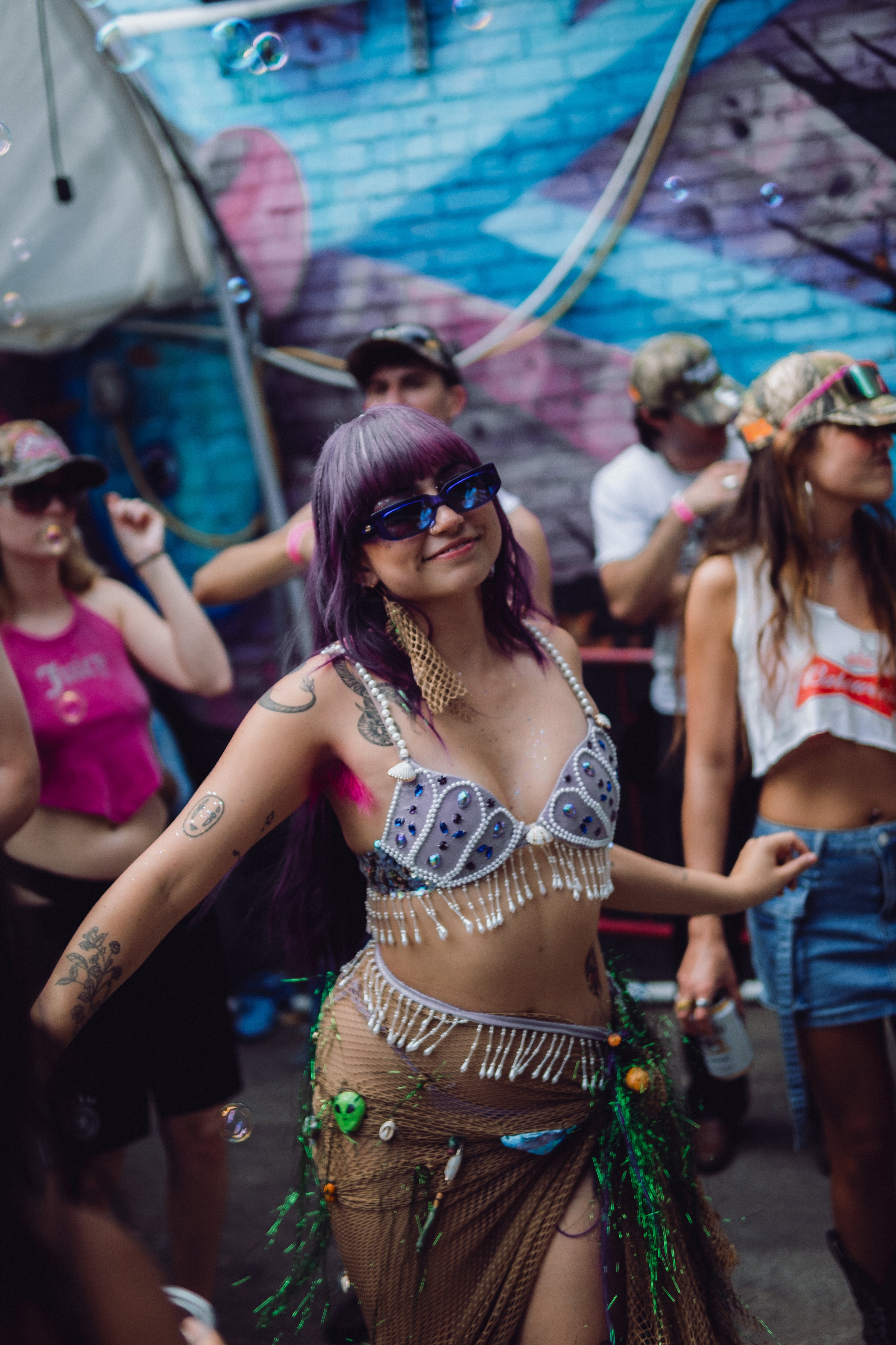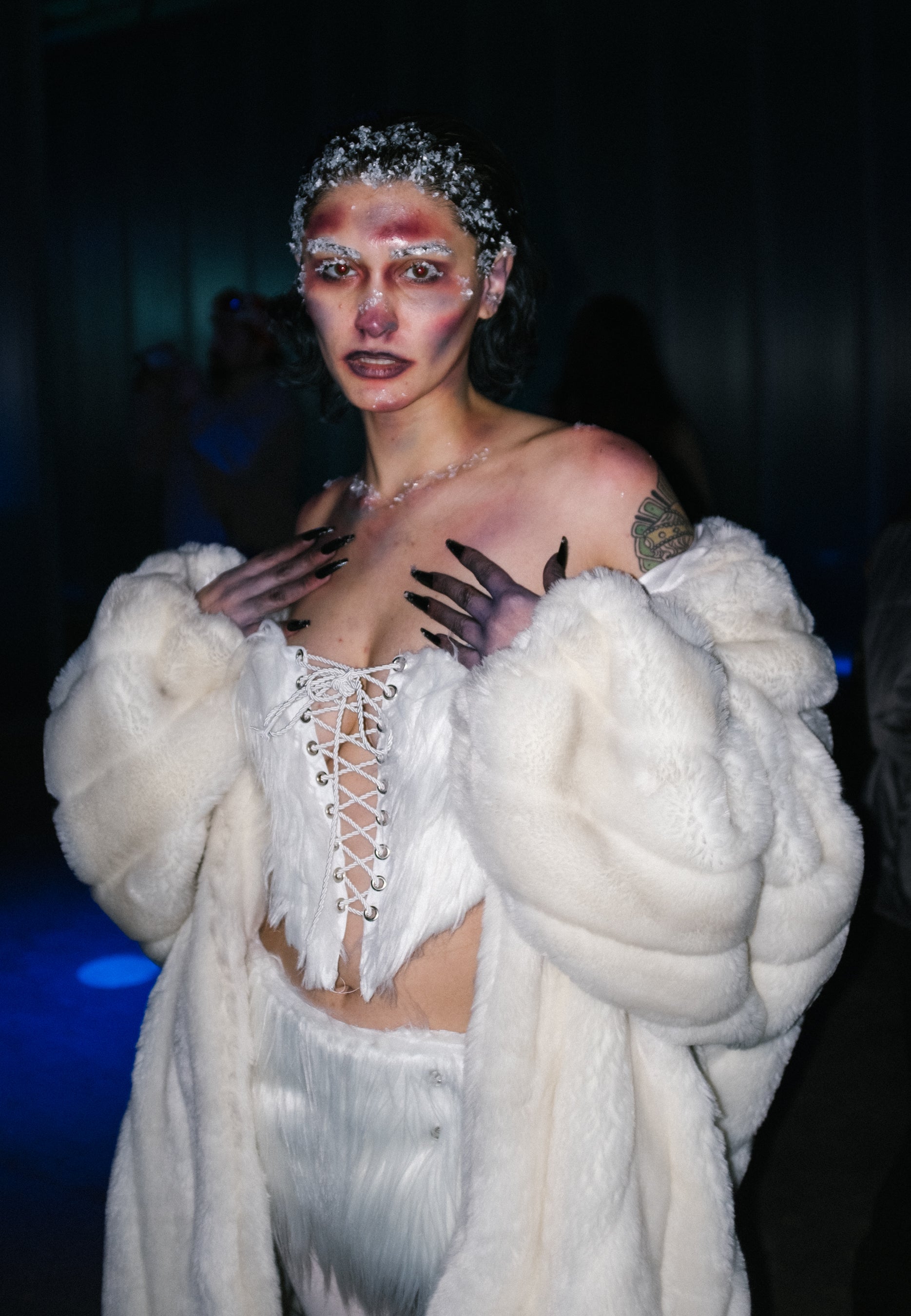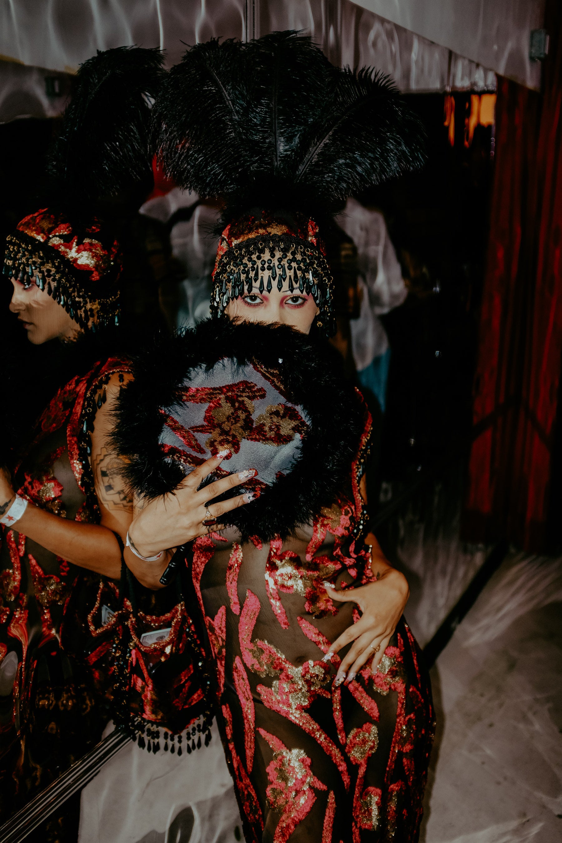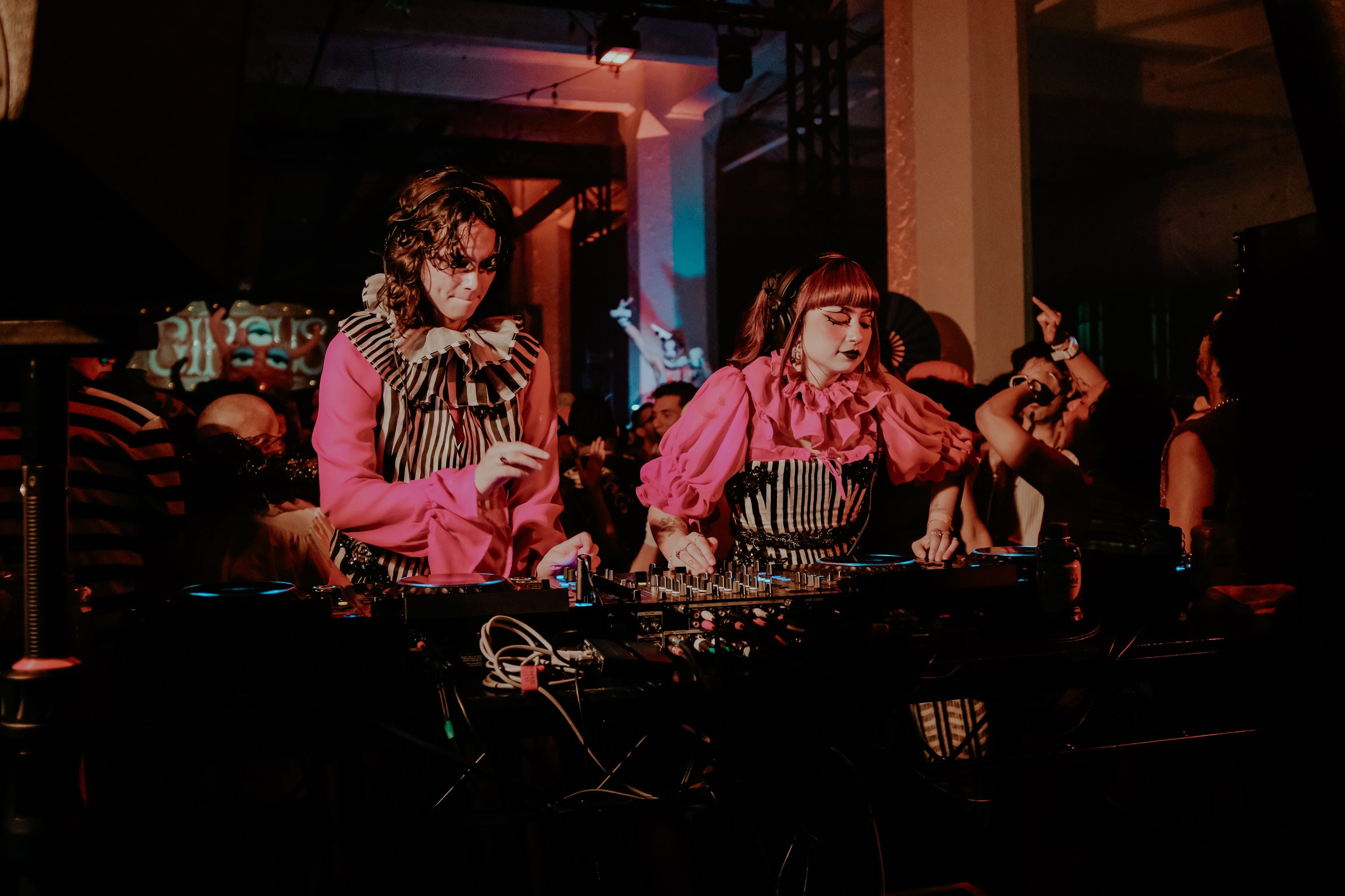 I began attending Book Club Radio wearing my own creations, designing and building outfits in response to each month’s theme as a way to experiment, hide, transform, and fully inhabit the night. Over time, these looks became part of how I showed up within the space, using costume as both armor and expression. That relationship eventually extended beyond the dance floor, leading me to collaborate directly with Tinzo, creating custom costumes for her and translating the ethos of Book Club Radio into wearable forms that moved between DJ booth, crowd, and performance.